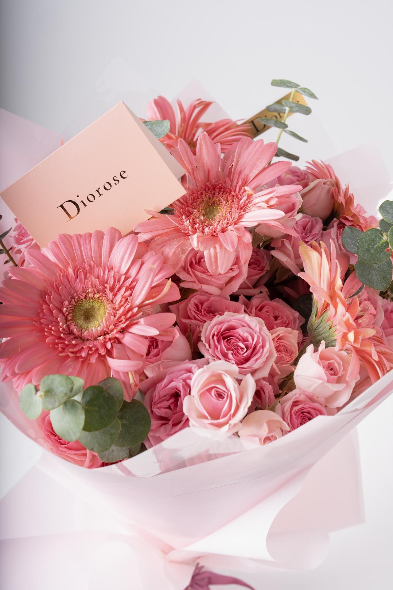 HAND BOUQUETA graceful hand bouquet combining the charm of soft pink Gerbera, the romance of dark pink baby roses, and the purity of snow white baby roses. Accented with refreshing blue eucalyptus and wrapped in delicate pink paper, this arrangement exudes elegance and warmth — perfect for expressing love, joy, or appreciation on any occasion.