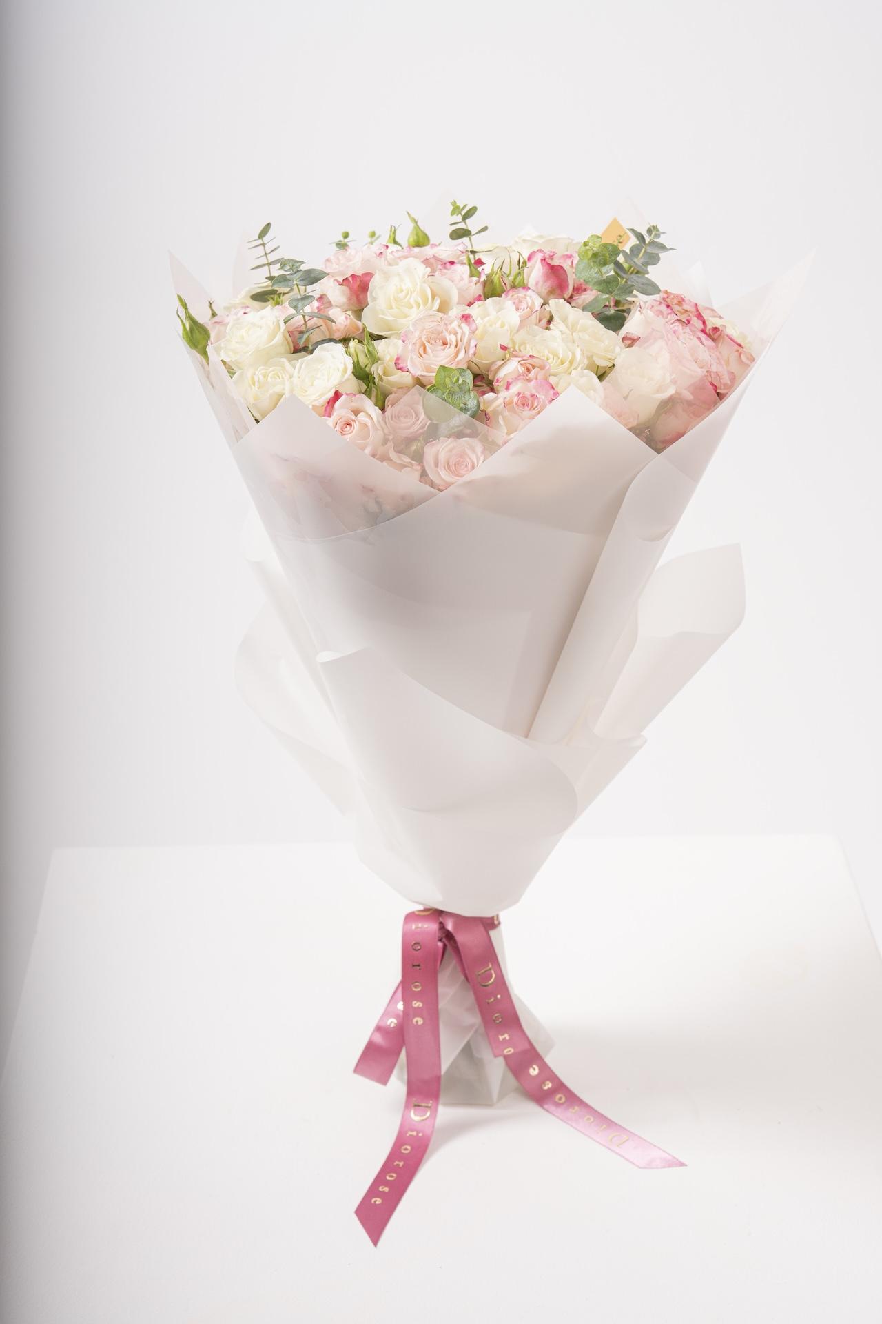 Rosy White - Spray Rose Bouquet with Eucalyptus