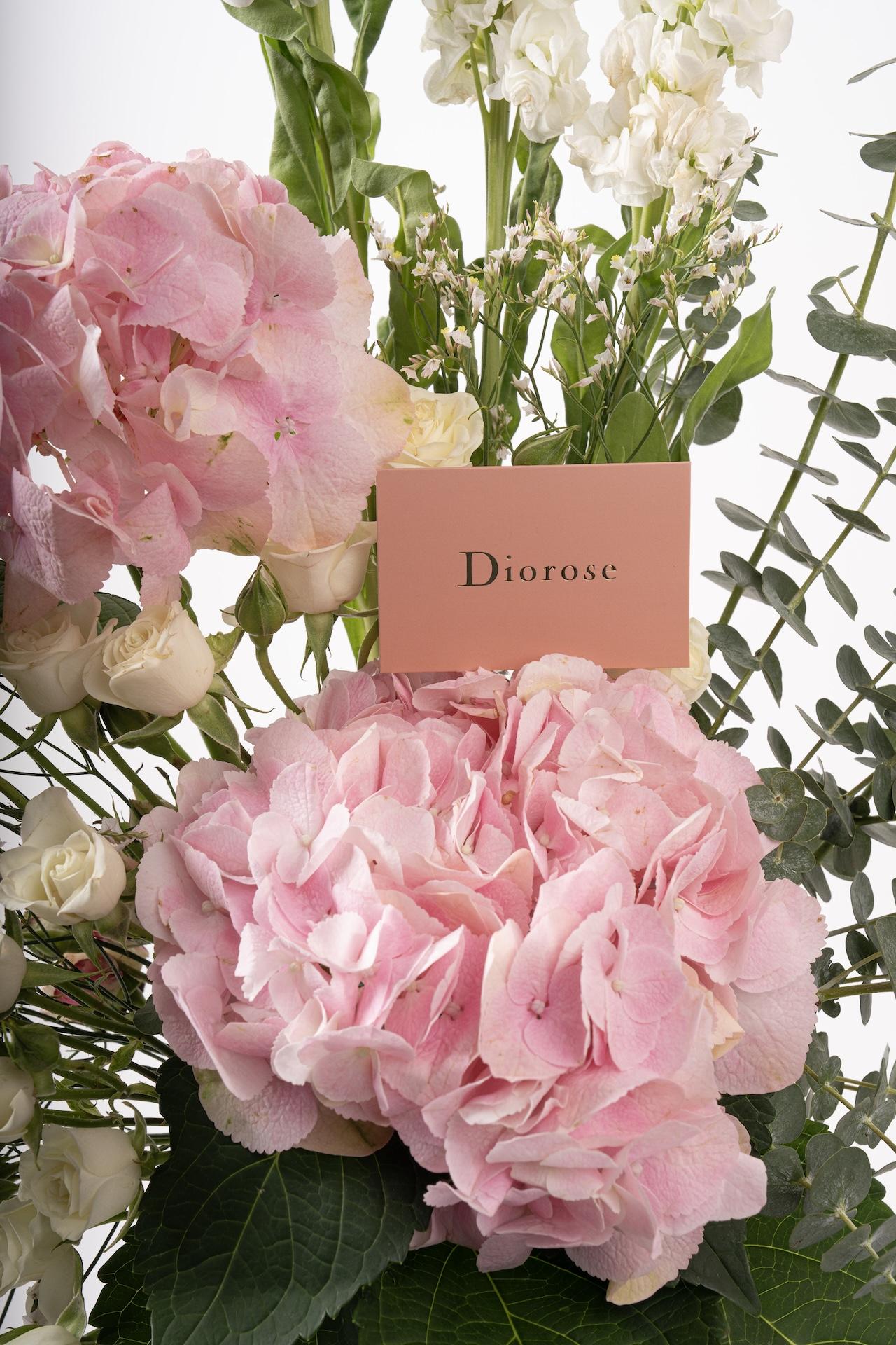 Pink Glass Vase with Light Pink Hydrangea & Seasonal Florals